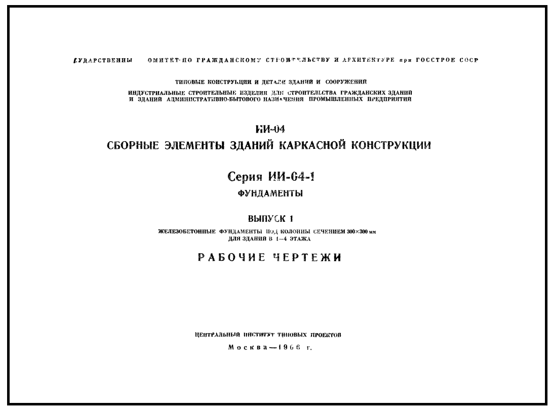 Серия ИИ 04-01. Сборные элементы зданий каркасной конструкции. Фундаменты.